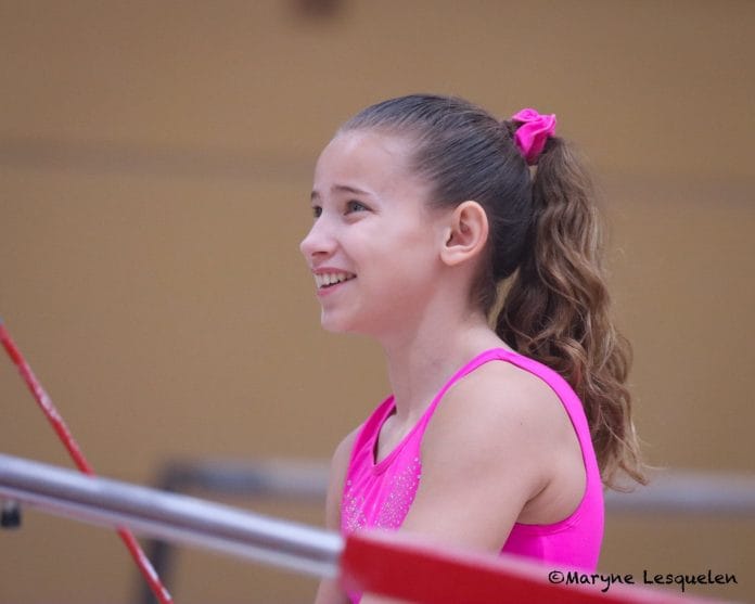 Anaëlle est venue faire un essai en juin 2017 pour savoir si elle s’inscrivait la saison suivante. En effet elle faisait déjà de la gym dans une association de quartier dans une salle non spécialisée et l’animatrice a pensé qu’il serait bien qu’Anaëlle vienne à Dinan pour s’épanouir un peu plus. Cet essai a été très compliqué, je l’ai fait tester sur les horaires d’un groupe performance. Dès l’échauffement elle était en pleure au milieu du praticable et n’osait pas suivre le reste du groupe. Le moment où les filles du groupe faisaient de la préparation physique, Anaëlle a même demandé aux autres si c’était obligatoire de faire ça.