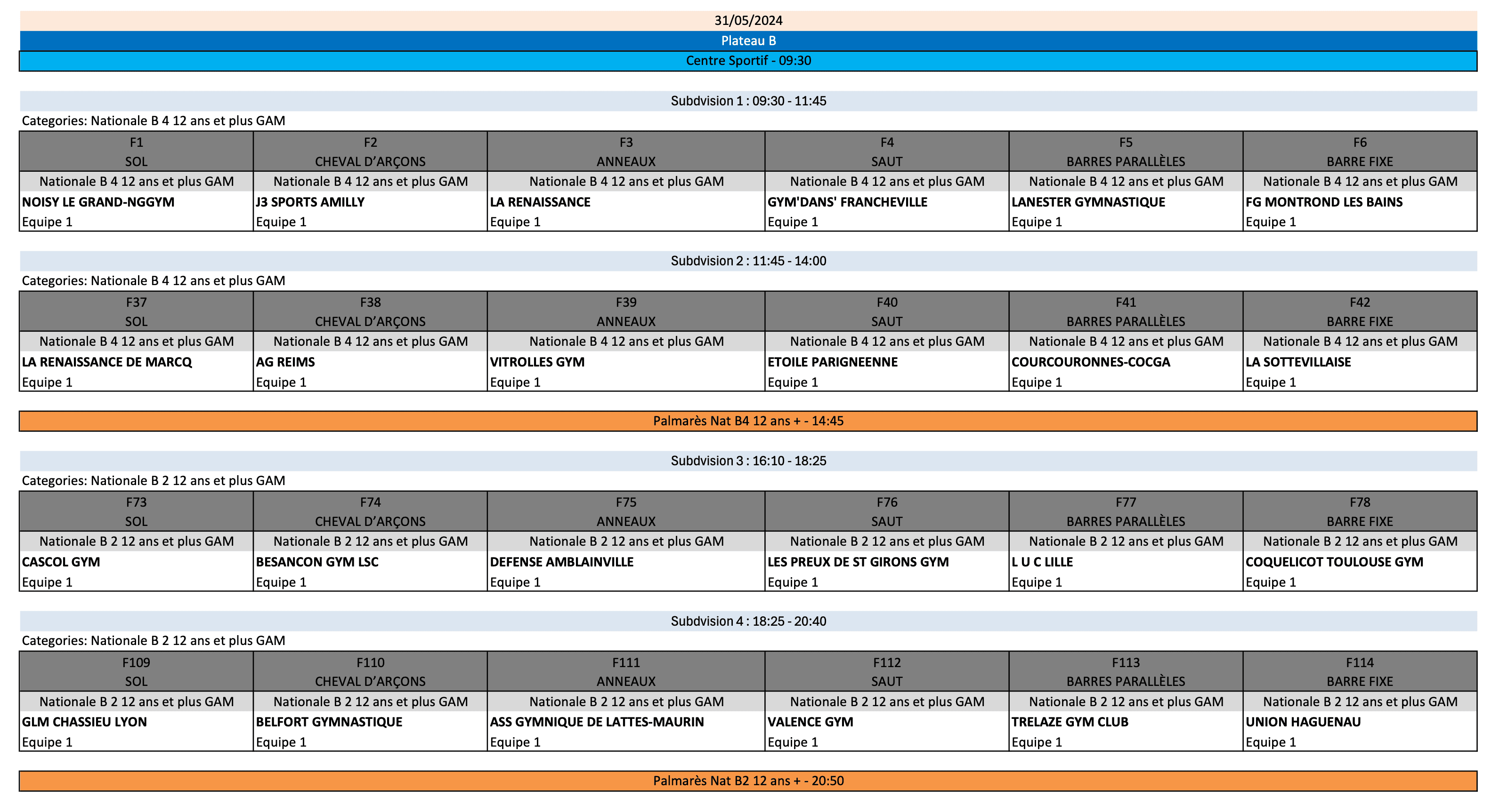 Vendredi 31 mai - Plateau B - Nationale B4 et B2
