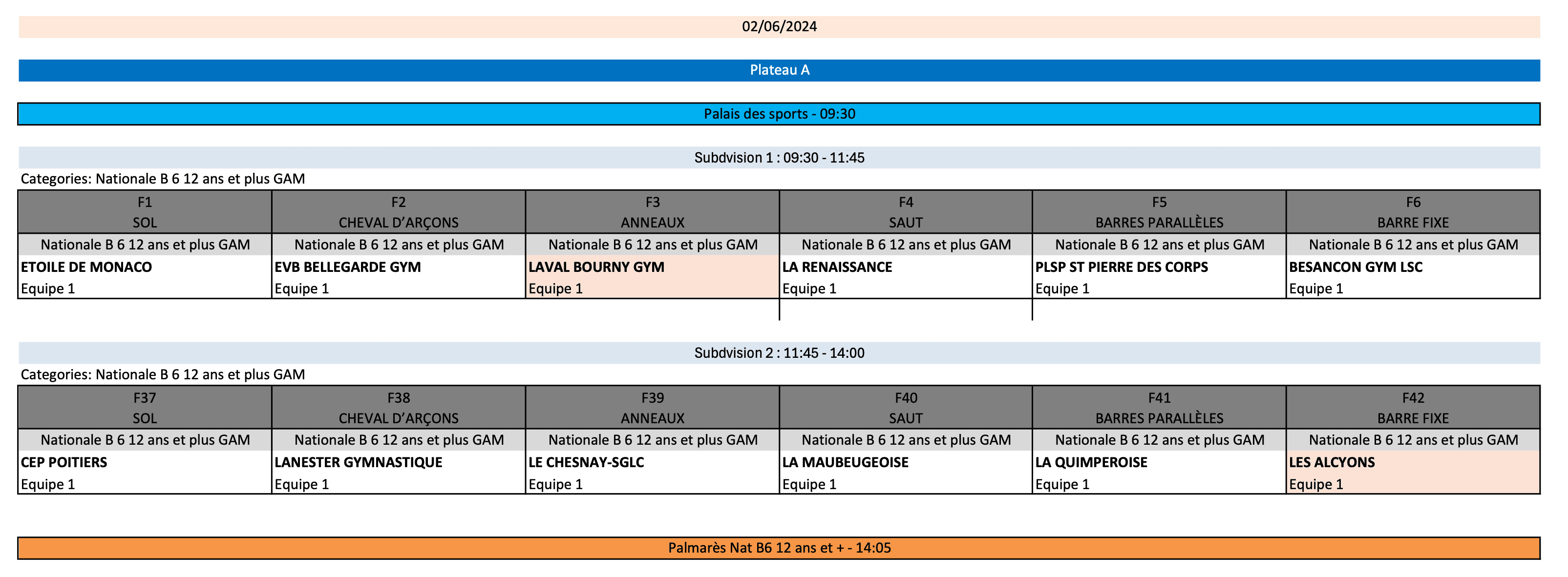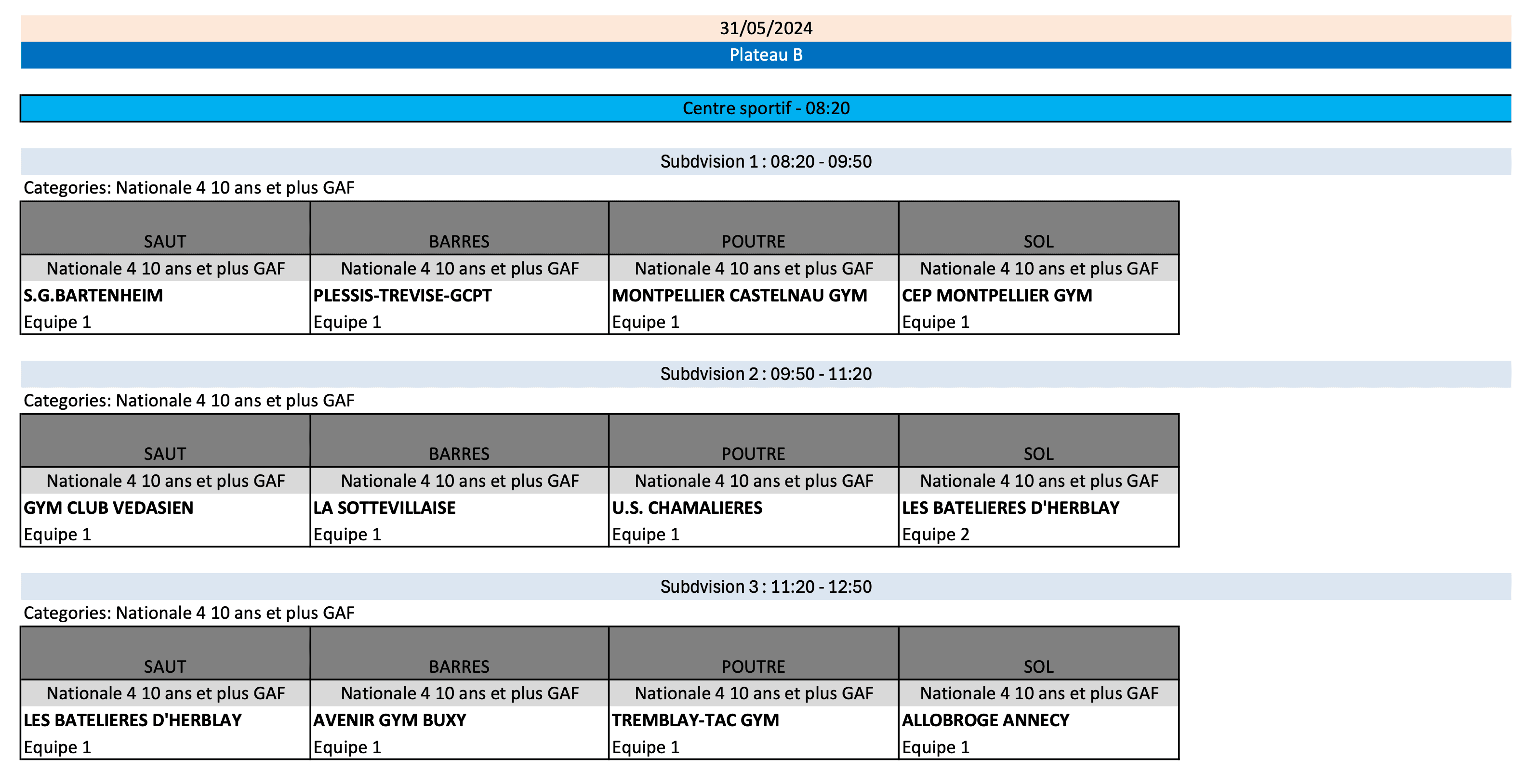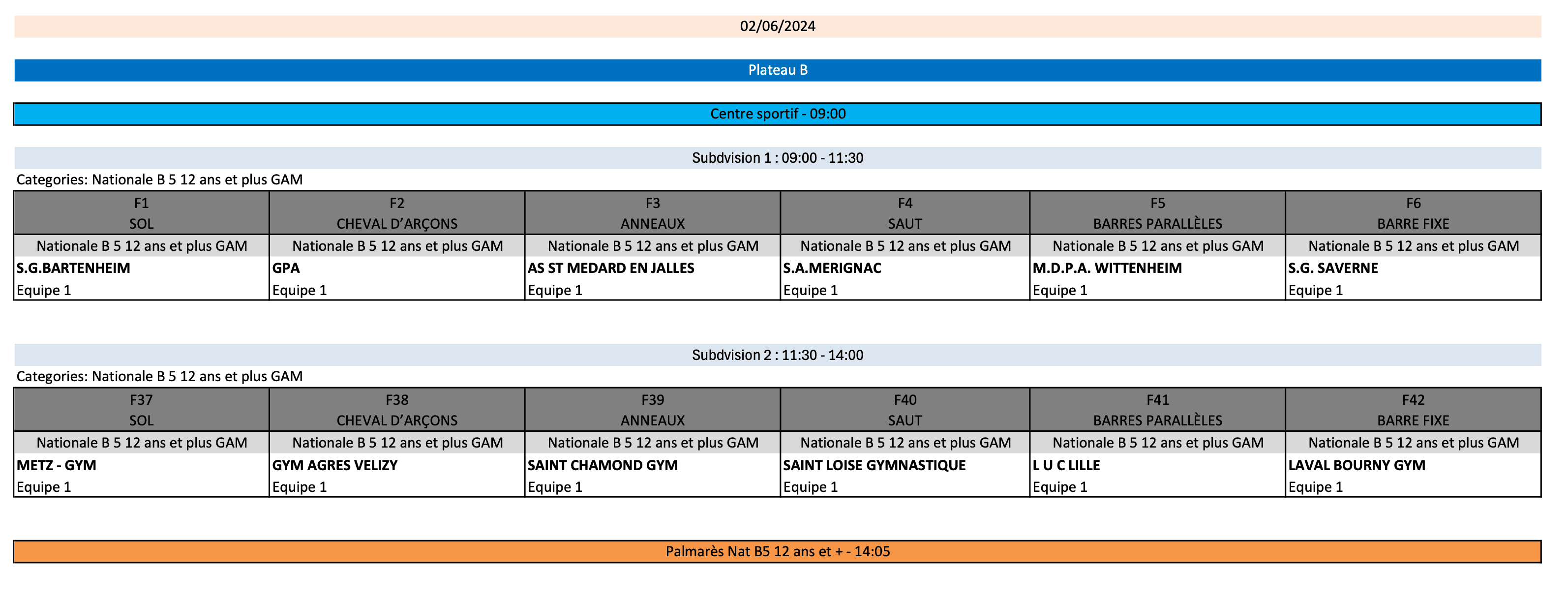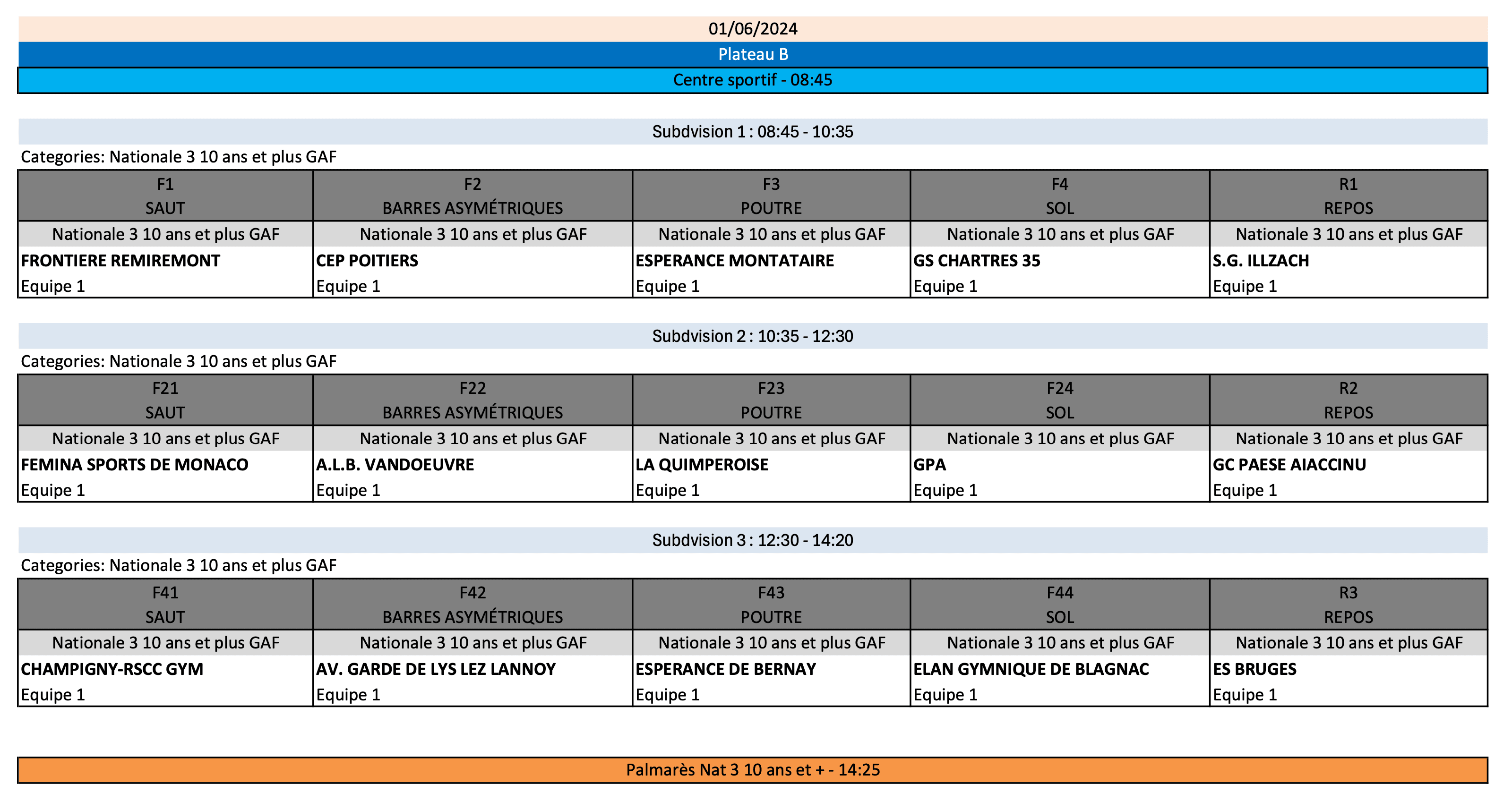 Samedi 1er juin - Plateau B - Nat 3 et Nat 1 10 ans et +