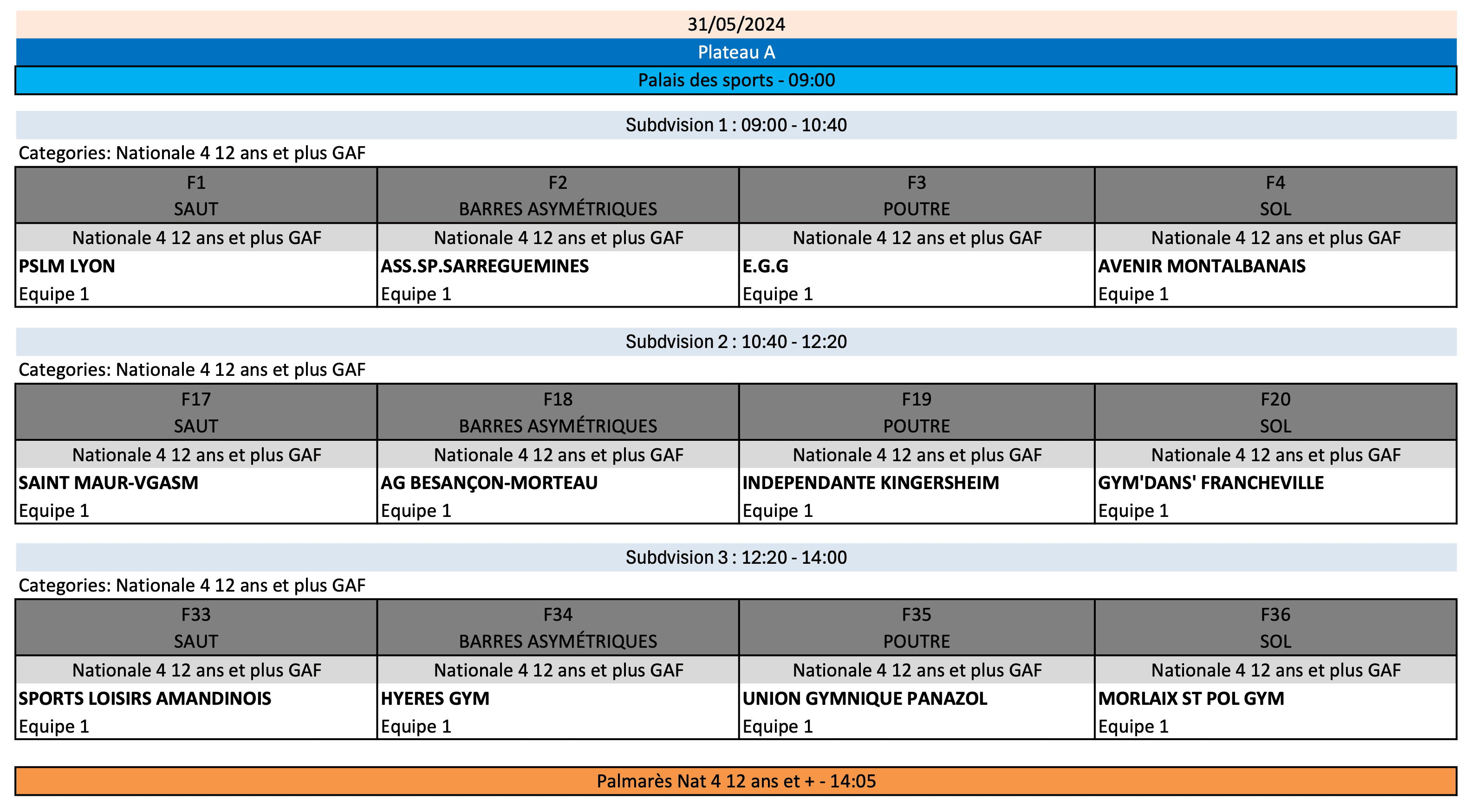 Vendredi 31 mai - Plateau A - Nat 4 et 2 12 ans et +