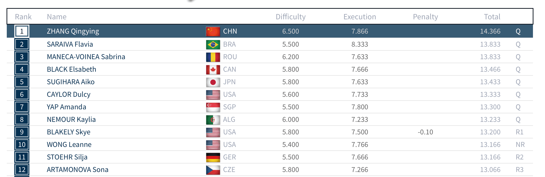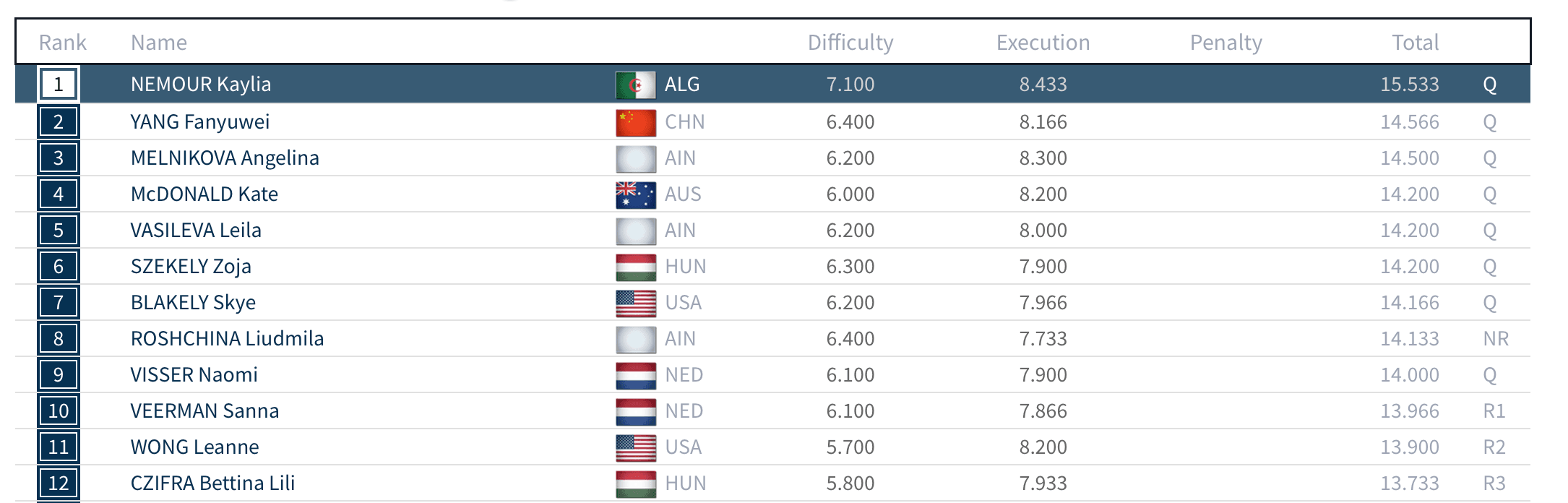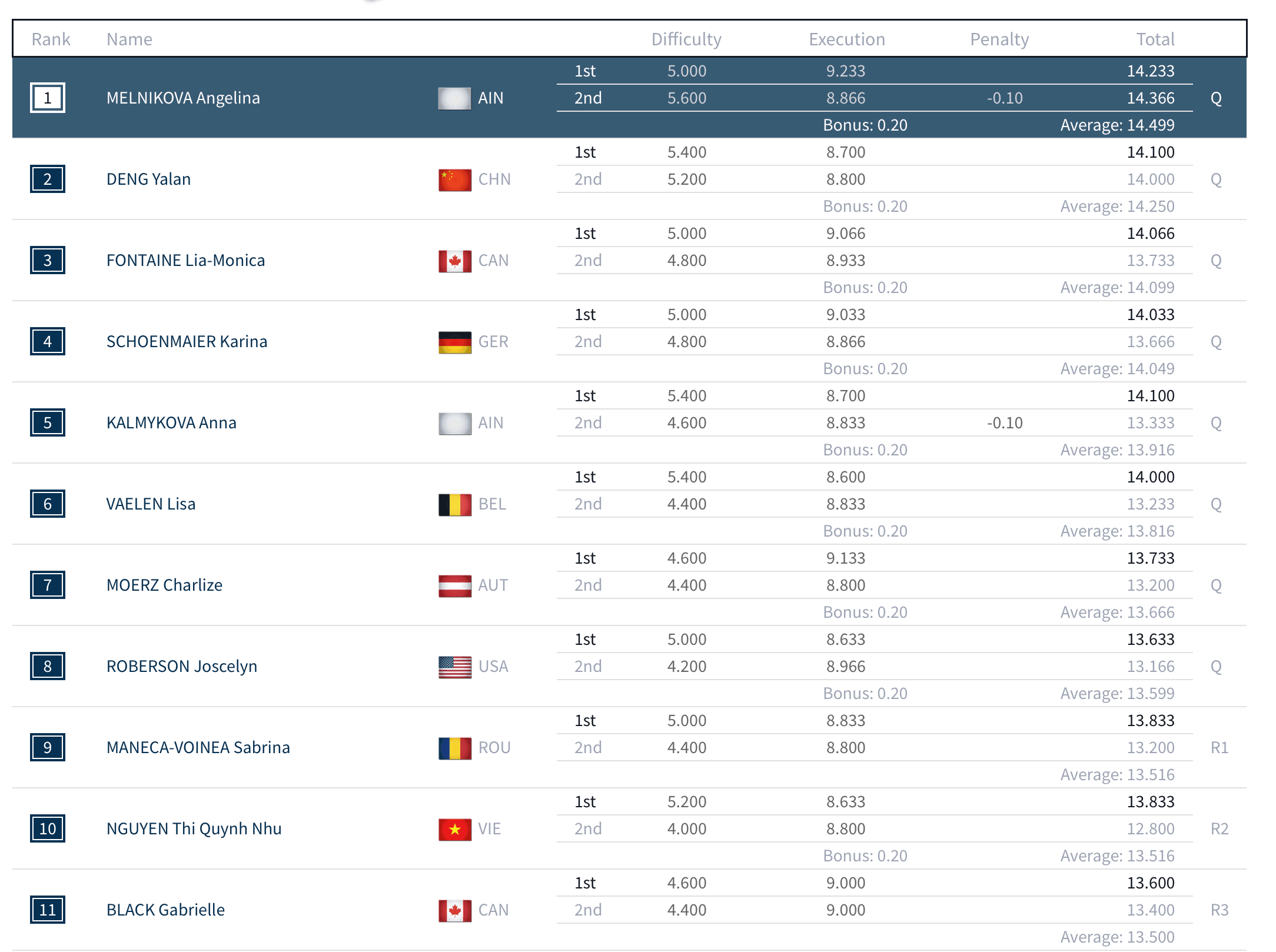 Les résultats des qualifications et des finales des championnats du monde de gymnastique artistique féminine de Jakarta, en Indonésie.