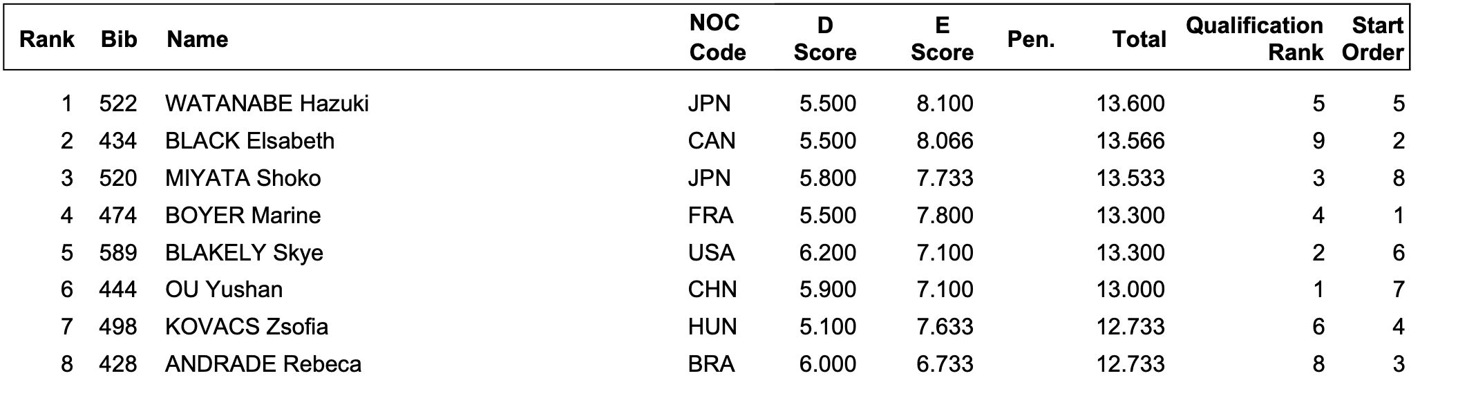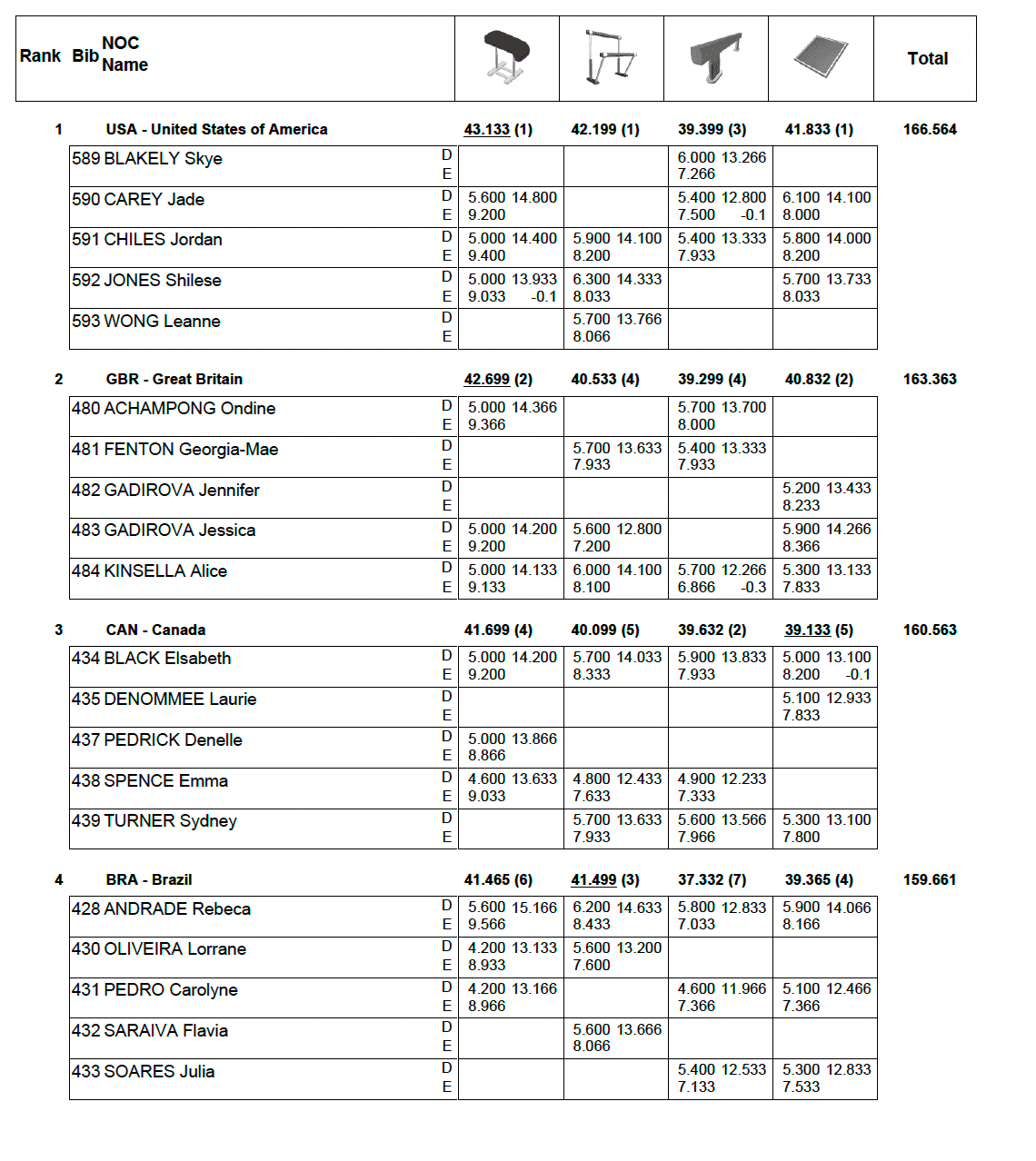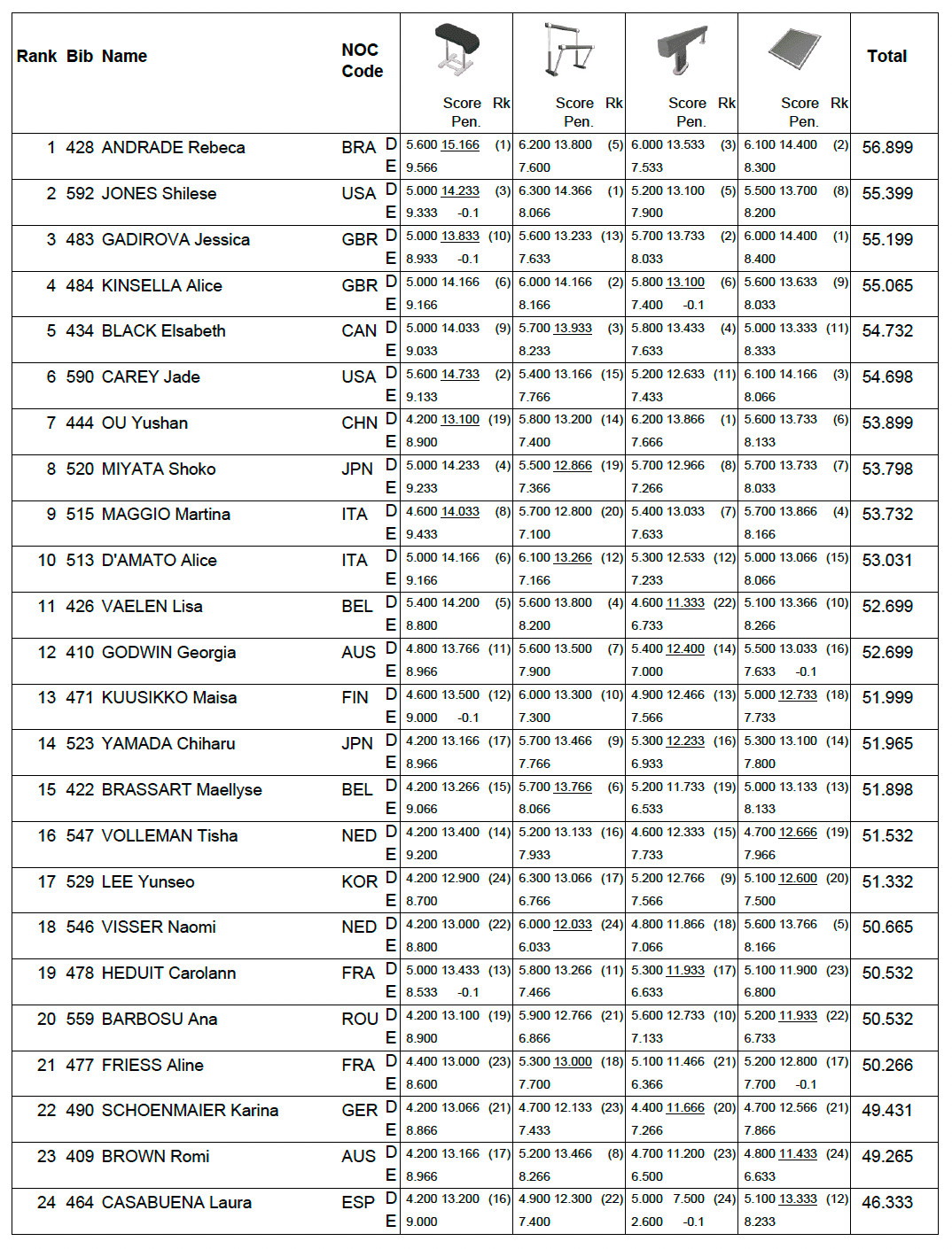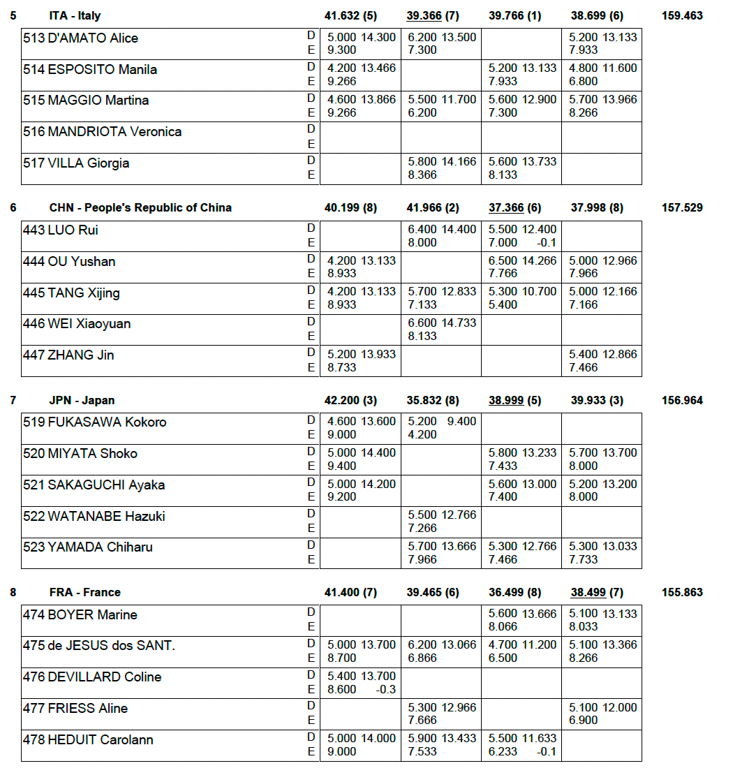 Du côté de la France, Coline Devillard décroche le bronze au saut et Marine Boyer termine 4ème de finale poutre. En individuel toujours, Carolann Héduit a terminé 19eme de la finale du concours général et Aline Friess, 21ème. Qualifiée en finale du concours général, Mélanie De Jesus Dos Santos a dû déclarer forfait en raison d’une douleur au genou. Enfin en équipe, l’équipe de France féminine, composée de Marine Boyer, Mélanie De Jesus Dos Santos, Carolann Héduit, Coline Devillard et Aline Friess, a terminé huitième de la finale par équipes.
