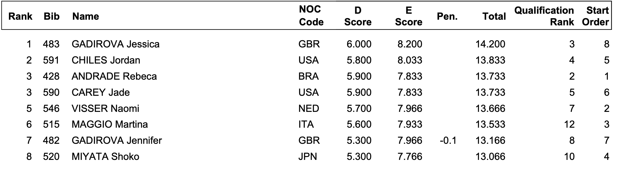 Finale saut féminin