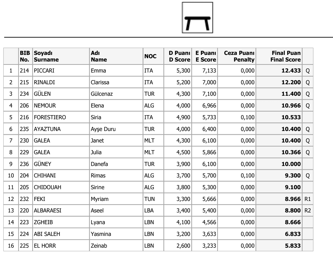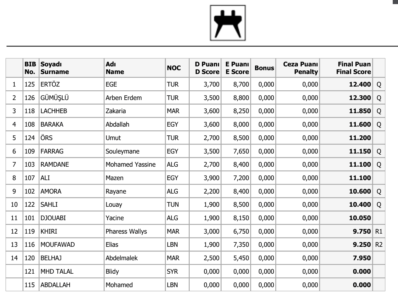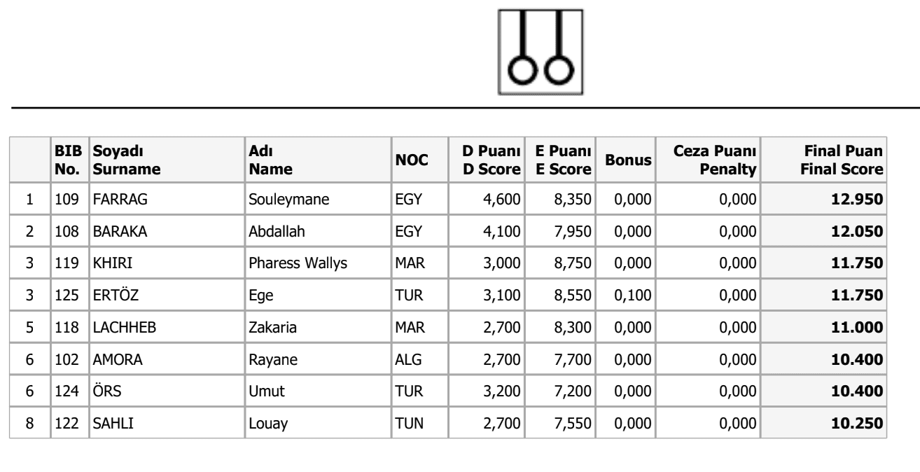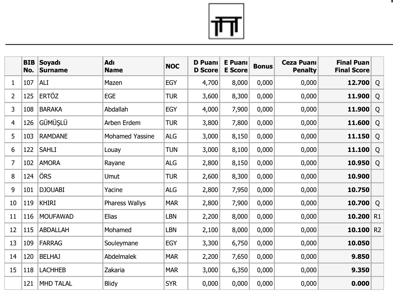 Pour sa toute première compétition internationale, Elina Nemour décroche l’argent à la poutre. Du côté des masculins, Wallis Khiri remporte le bronze aux anneaux et au saut, et Zakaria Lechheb le bronze aux arçons. Ils remportent également une médaille de bronze historique en équipe.