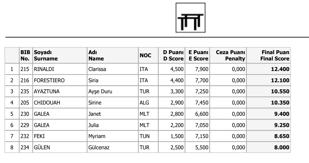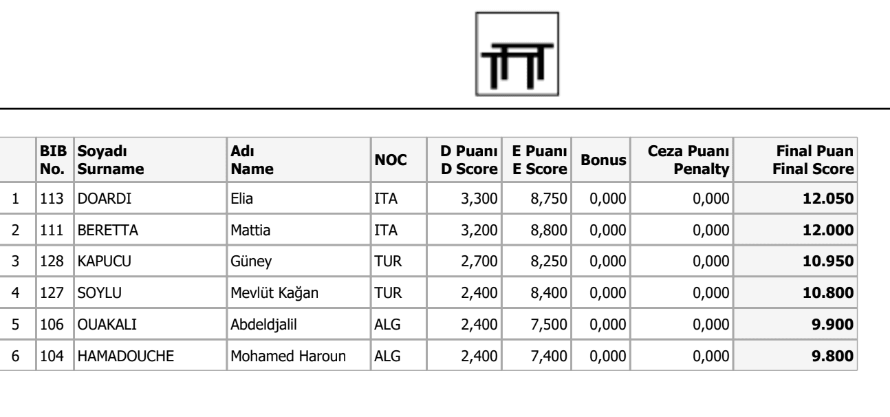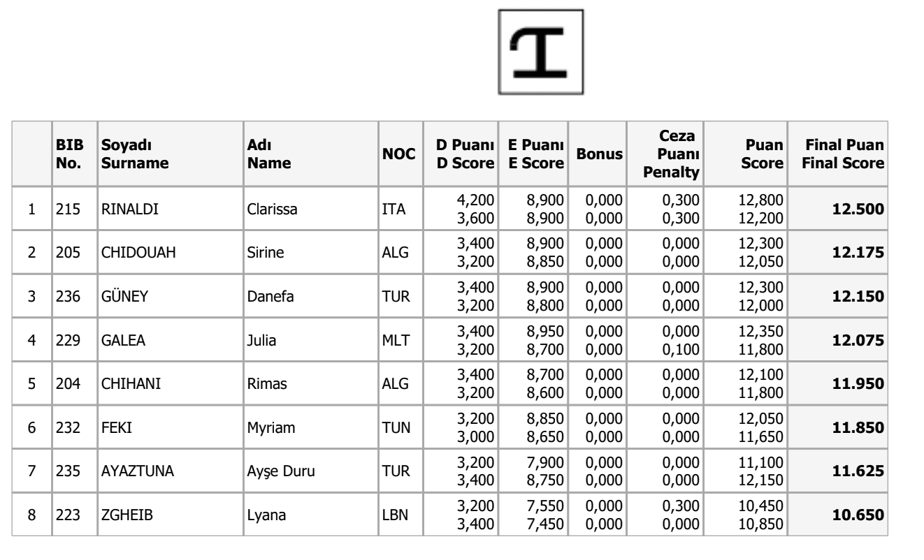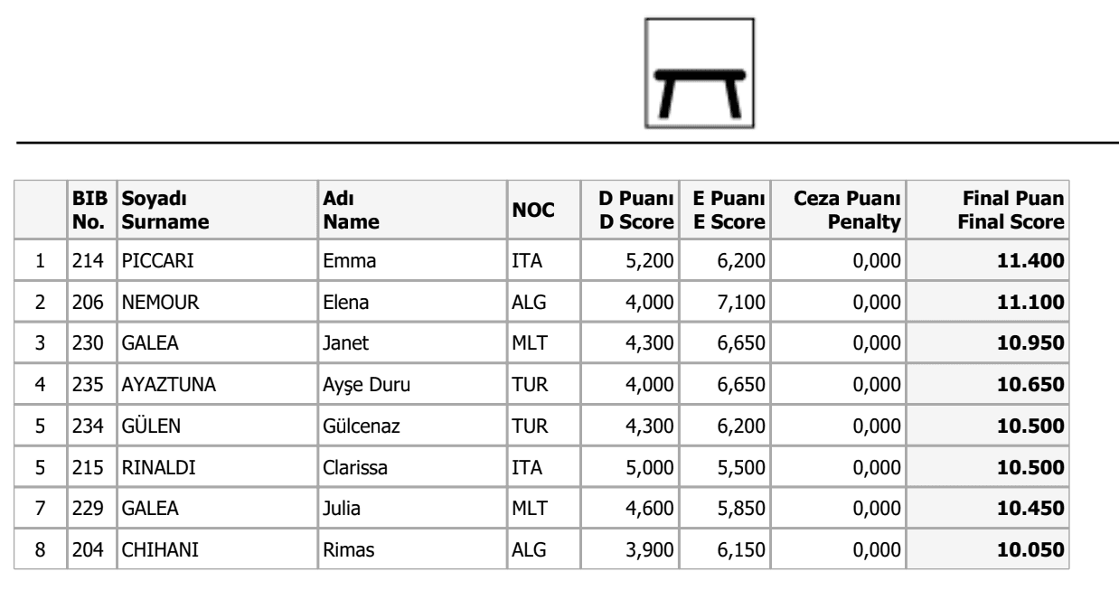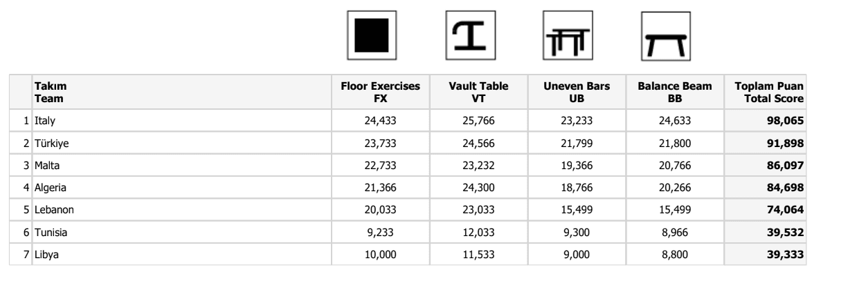 Pour sa toute première compétition internationale, Elina Nemour décroche l’argent à la poutre. Du côté des masculins, Wallis Khiri remporte le bronze aux anneaux et au saut, et Zakaria Lechheb le bronze aux arçons. Ils remportent également une médaille de bronze historique en équipe.