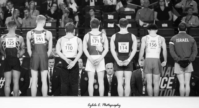 - Pendant les 30 secondes d’échauffement, chaque gymnaste a droit à 2 sauts (maximum). Ceci s’applique à n’importe quelle phase de la compétition où l’échauffement a lieu sur le podium. Les gymnastes ont droit à leurs 2 sauts d’échauffement même si le temps de 30 secondes d’échauffements est écoulé. Le juge de ligne sera responsable de s’assurer que le maximum de 2 sauts est respecté.