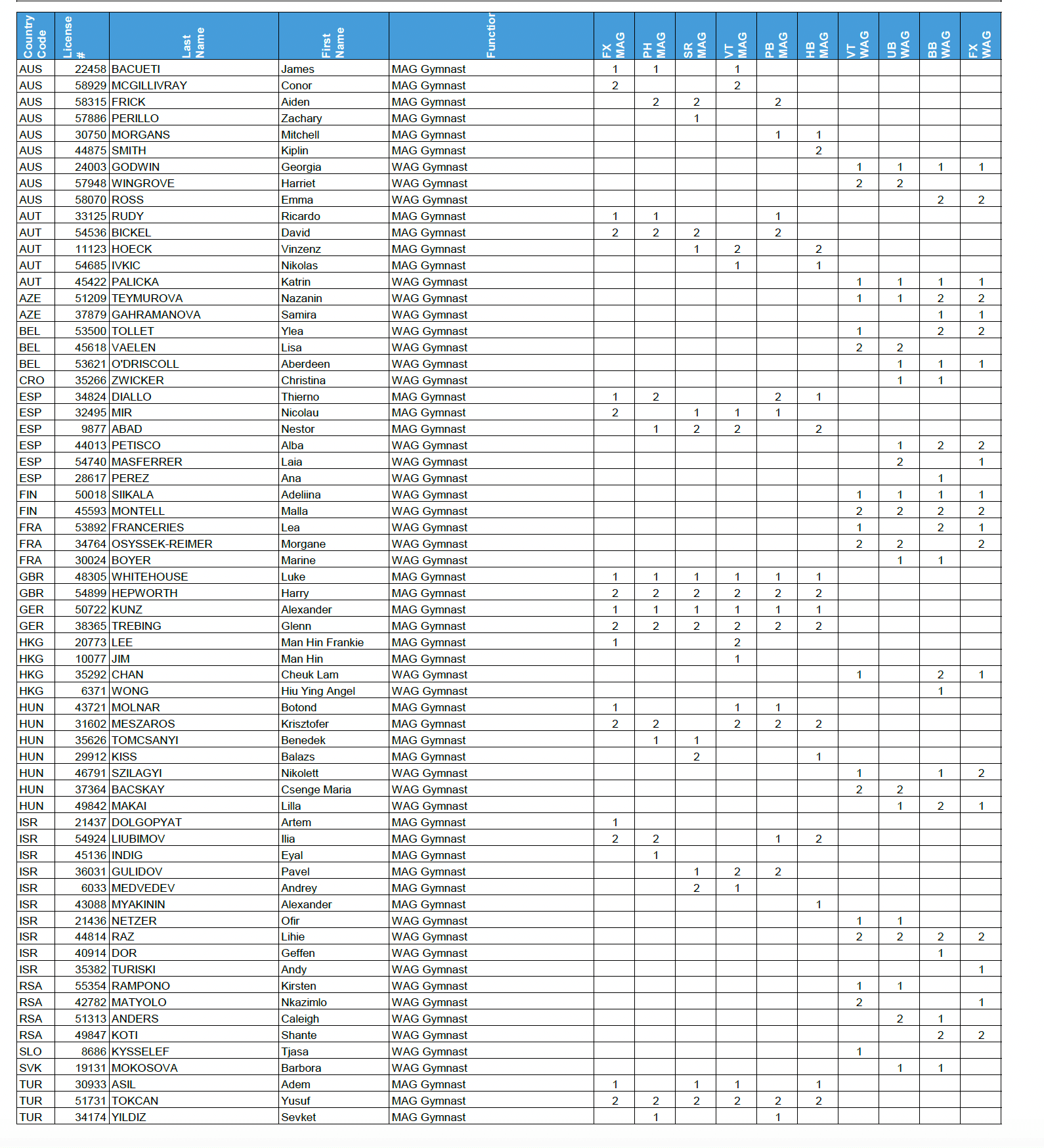Les gymnastes engagé.es :