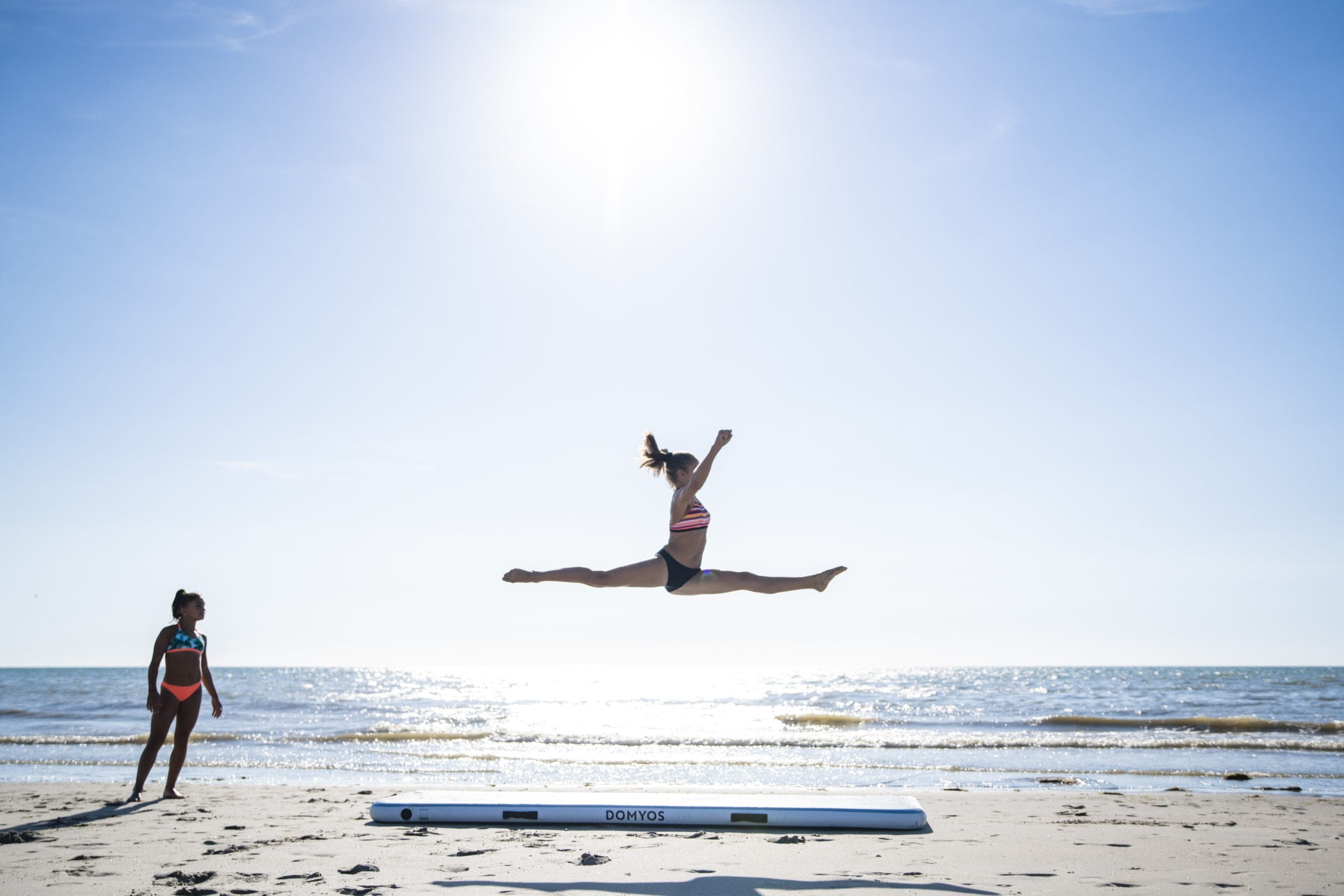 Puis de nombreux tests ont été effectués : tests de surpression, d’abrasion et de résistance au soleil, la poutre gonflable a été testée dans des clubs de gymnastique et chez des particuliers. Les gymnastes de haut-niveau l’ont également adoptée. Testée par Aline Friess, Marine Boyer, Caly Chayani, Raphaëlle Letort ou encore par le club masculin de La Madeleine, tous ont approuvée la gamme. “Elle est idéale à transporter en salle d’échauffement et à l’hôtel lors des compétitions pour la préparation”, éclaire d’ailleurs Marine Boyer.