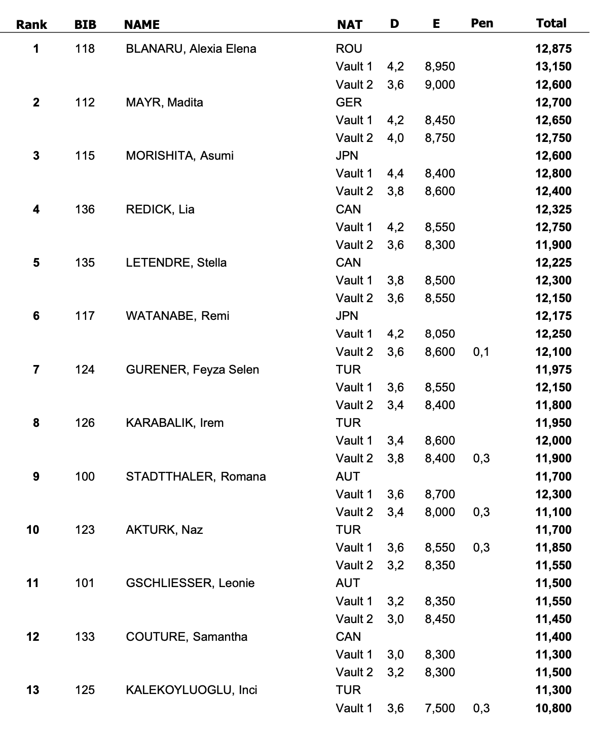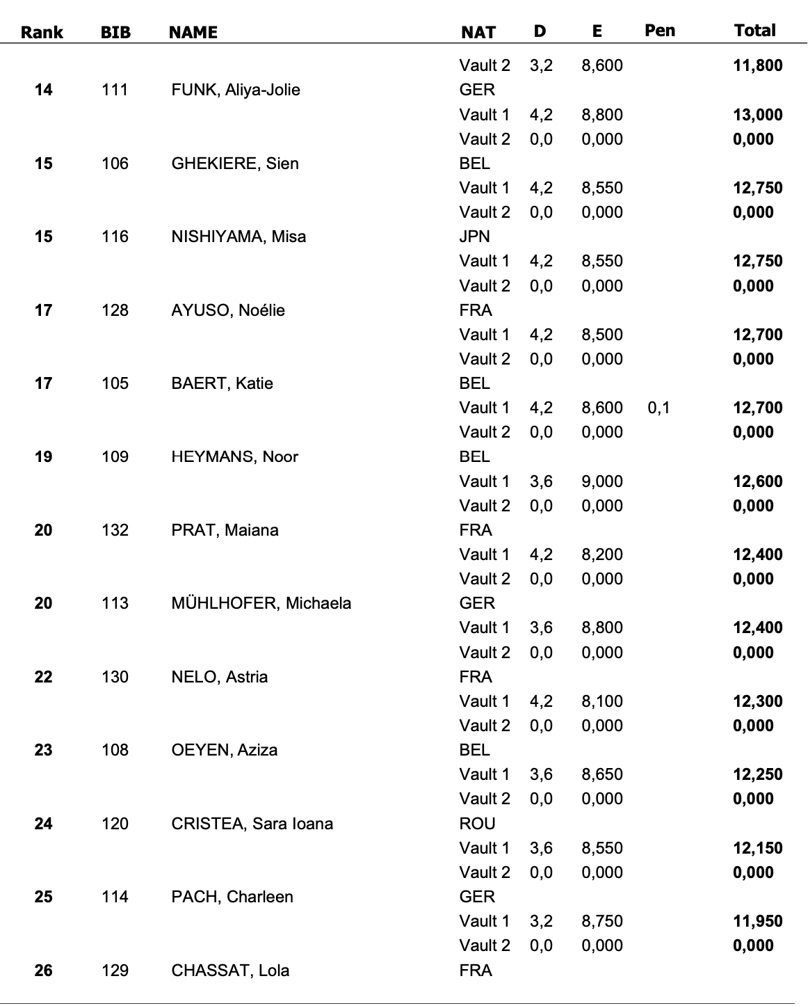 Les résultats de la DTB Pokal Team Challenge de Stuttgart qui s’est tenue du 15 au 17 mars. La France repart avec neuf médailles : le bronze en équipe pour les juniors GAM, l’or en équipe pour les juniors GAF, le bronze en équipe en senior GAF, l’or aux barres parallèles et à la barre fixe et l’argent aux anneaux pour Anthony Mansard en junior ; l’or au sol et le bronze à la poutre pour Maiana Prat et l’or aux barres asymétriques pour Lola Chassat.