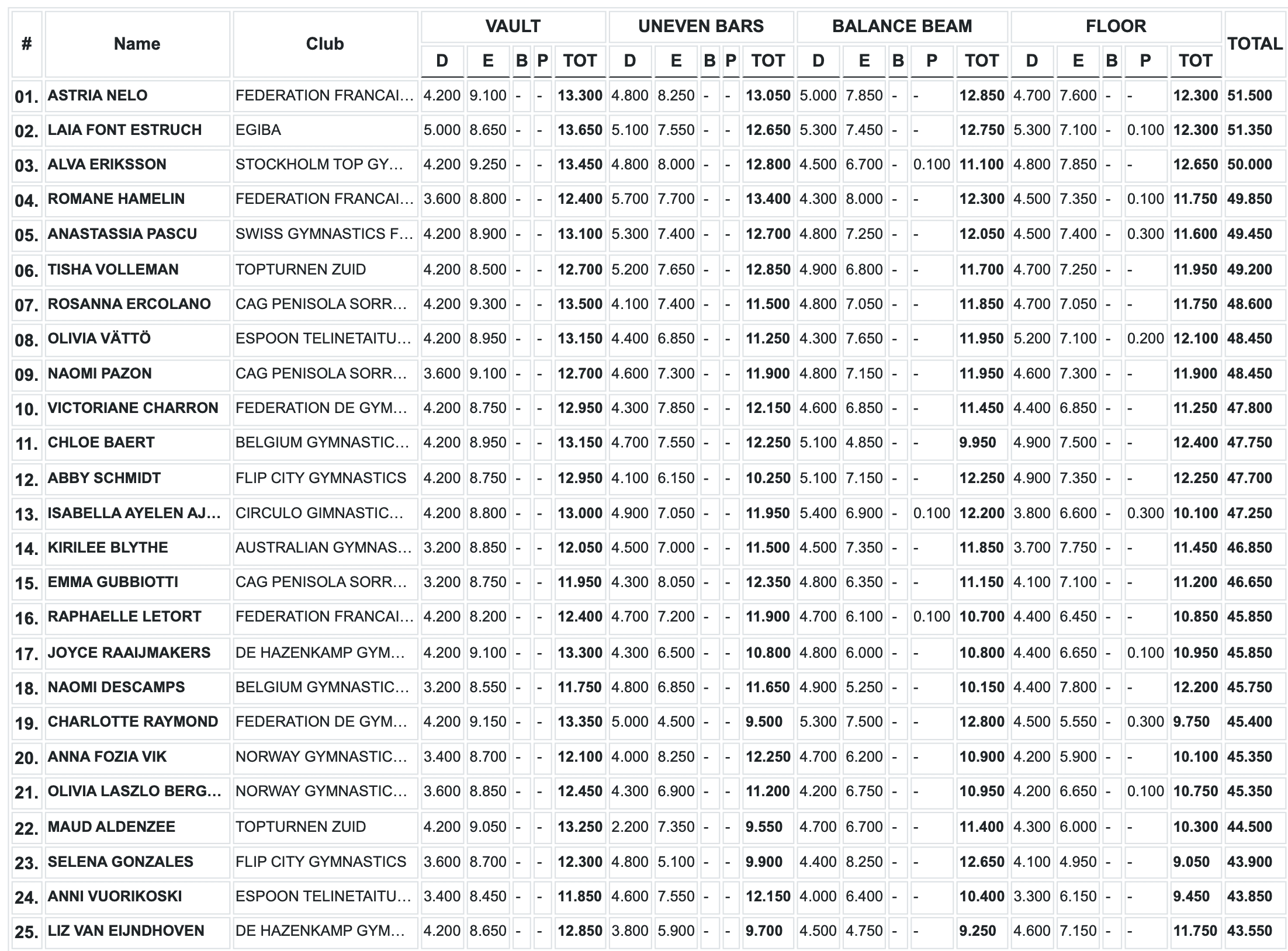 Les deux Françaises, accompagnées également de Raphaëlle Letort-Aubin, ont été médaillées en individuel à la Gymnova Cup. Astria Nelo remporte l’or au concours général et le bronze à la poutre, et Romane Hamelin le bronze aux barres asymétriques.