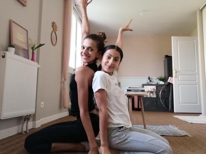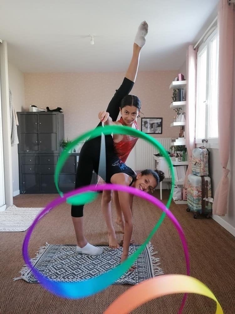 Nour : Quand je m’entraîne avec ma soeur, je fais les écarts et je continue à travailler mes difficultés d’engins et corporelles.