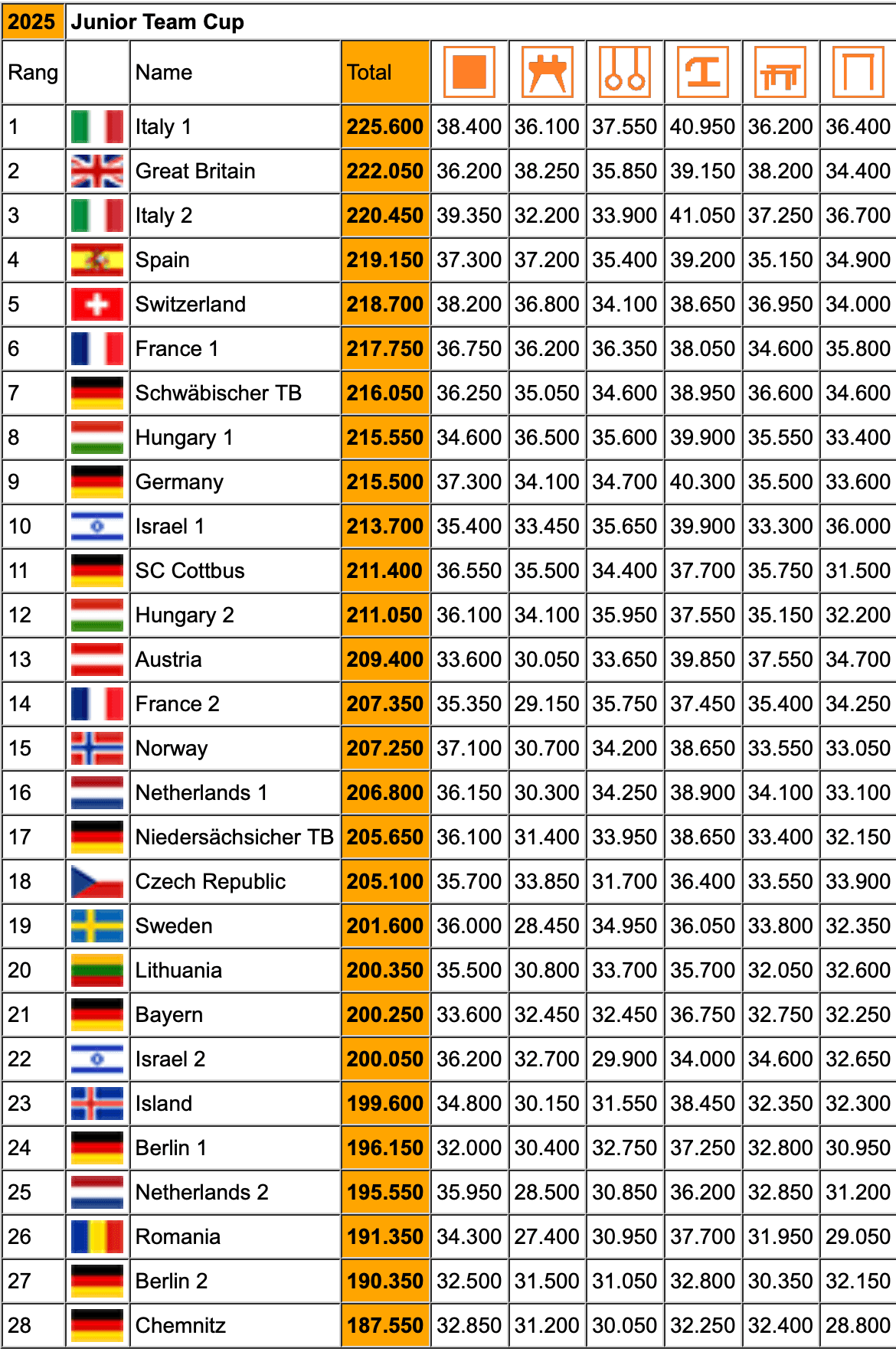 Les résultats de l’Internationaler Junior Team Cup de Berlin, compétition qui réunit les juniors masculins. La France était représentée avec deux équipes et repart avec deux médailles d’or, deux médailles d’argent et trois médailles de bronze.