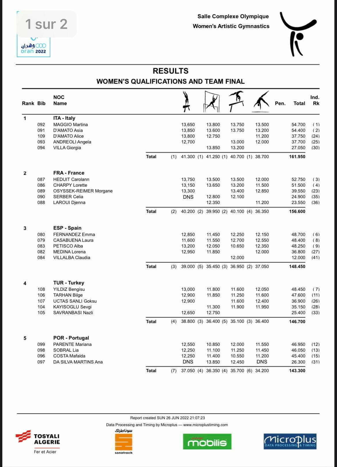 Carolann Héduit, Lorette Charpy, Morgane Osyssek-Reimer, Célia Serber et Djenna Laroui ont parfaitement entamé leur compétition sur les terres algériennes en décrochant l’argent au concours par équipes, terminant derrière l’Italie, intouchable. L’Espagne complète le podium.