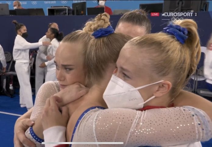 Les Russes s’offrent l’or olympique par équipes à Tokyo. Privées de Simone Biles qui a déclaré forfait après le premier agrès, les Américaines terminent deuxièmes. Le bronze revient aux Britanniques, véritable outsider de la compétition. Les Françaises terminent sixièmes.