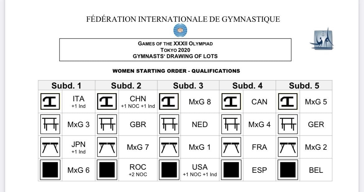 - Lundi 26 juillet 19h – 22h (12h – 15h en France) : finale par équipes GAM