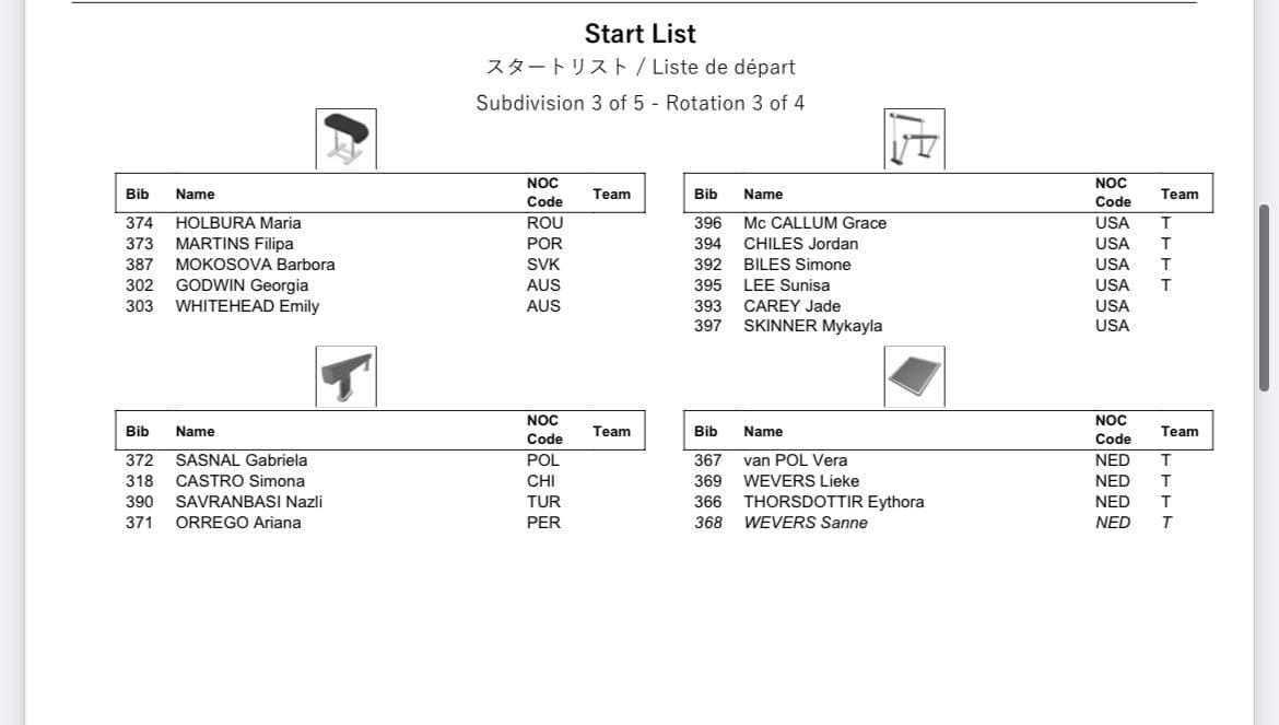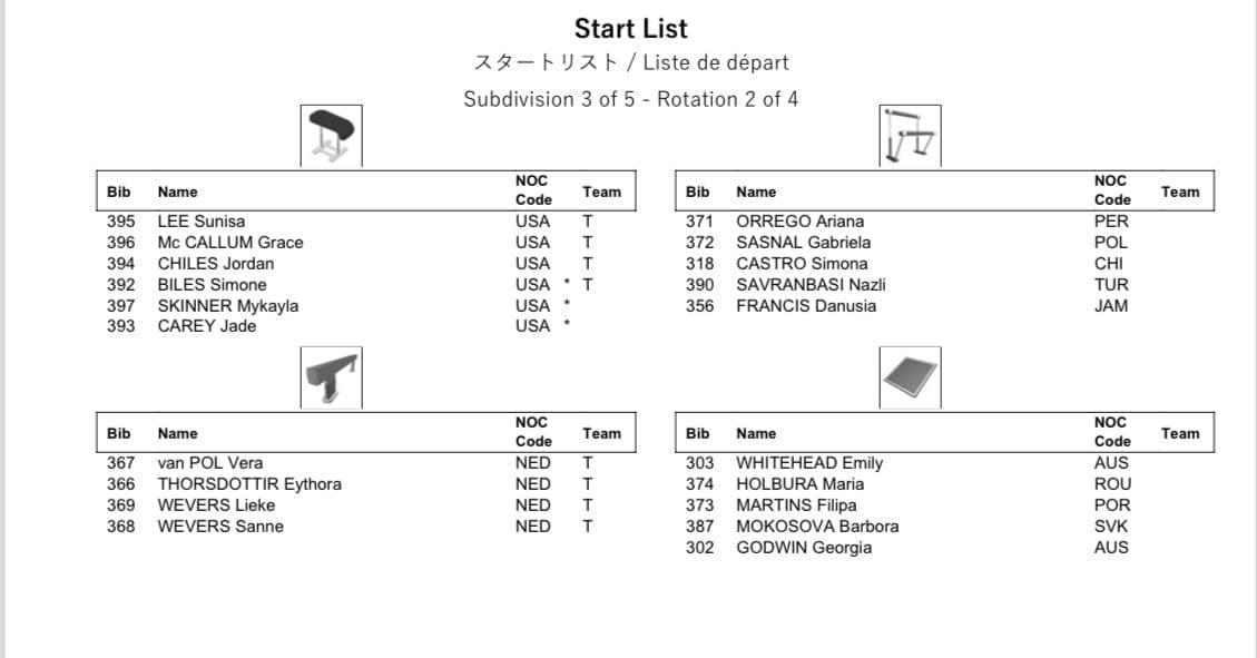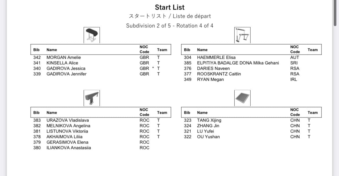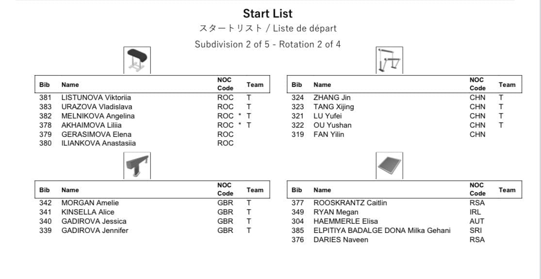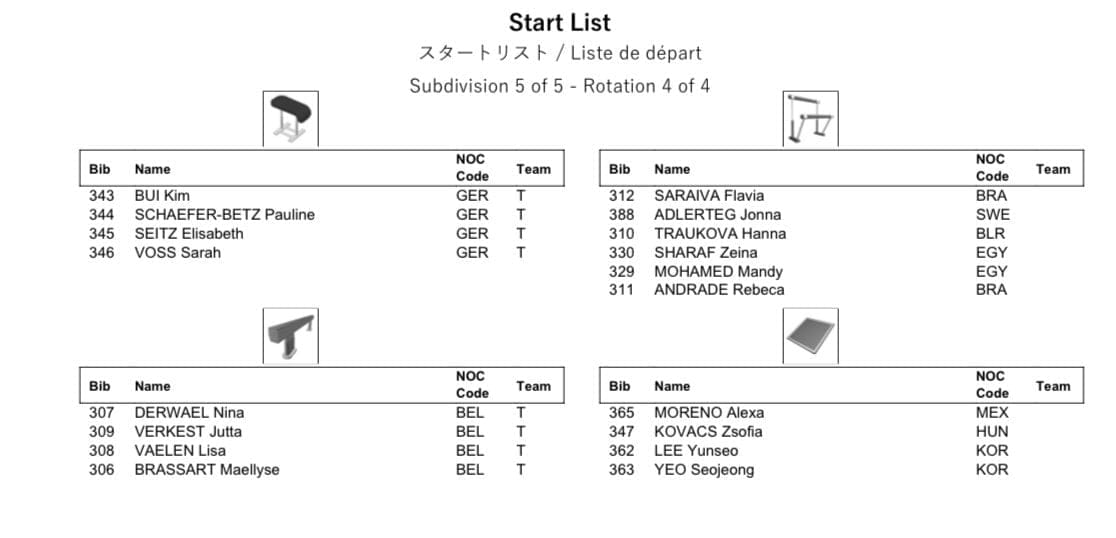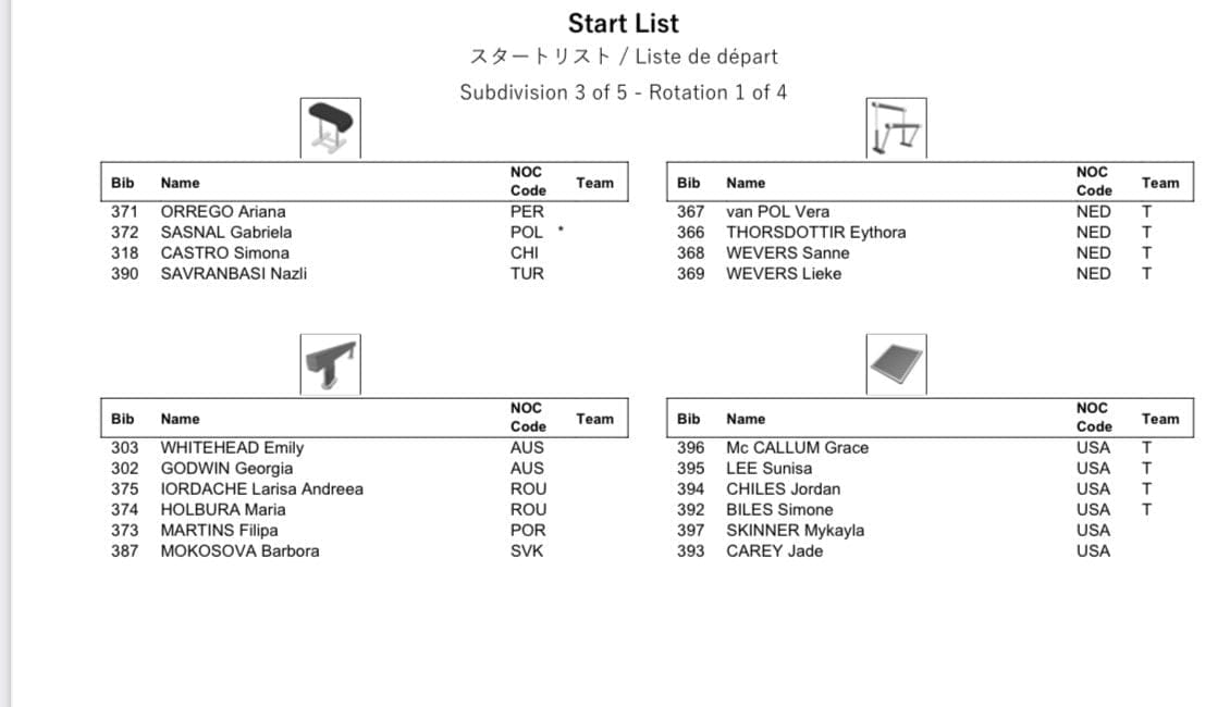Après les masculins ce samedi, c’est au tour des féminines de disputer leurs qualifications. L’équipe de France, composée de Mélanie De Jesus Dos Santos, Marine Boyer, Carolann Héduit et Aline Friess évolueront dans la 4eme subdivision (10h05, heure française). Elles débuteront leur compétition à la poutre et évolueront en même temps que les Espagnoles et les Canadiennes. Les Japonaises et les Italiennes ouvriront le bal et évolueront dans la première subdivision. Les Russes évolueront dans la deuxième subdivision, en même temps que les Chinoises et les Britanniques. On retrouvera les Américaines dans la troisième subdivision.