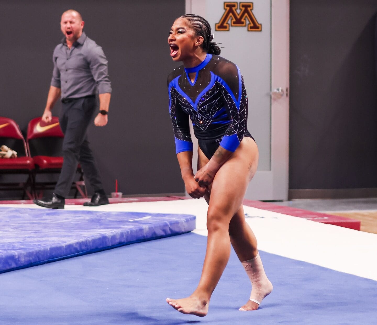 Face à un contexte politique et social particulièrement tendu à Minneapolis et dans l’État du Minnesota, les athlètes américains sont de plus en plus nombreux à s’exprimer. Si certain.e.s prennent la parole en conférence de presse ou sur les réseaux sociaux, Jordan Chiles, l’une des plus grandes gymnastes américaines du moment, a choisi de s’exprimer à travers l’art, en faisant le choix de représenter son sol inspiré de Prince lors de cette rencontre NCAA.