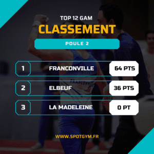Place à la deuxième journée de Top 12 en GAM ce samedi 14 février. Quatre rencontres sont au programme. Débuts des matchs à 15h.